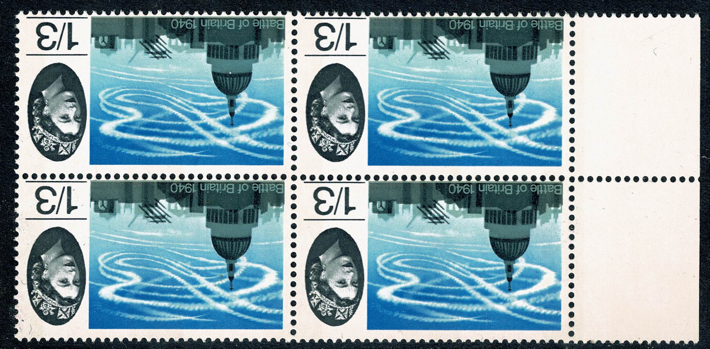 1965 Battle of Britain 1/3 (phos). WATERMARK INVERTED marginal block . SG 678pWi.