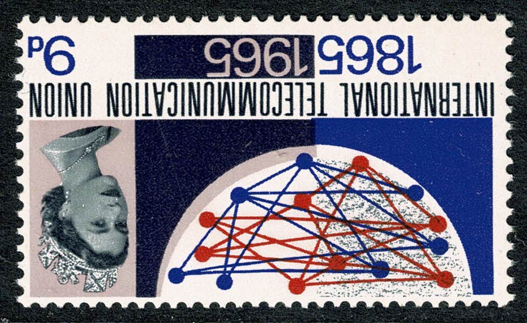 Unmounted Mint 1965 I.T.U. 9d (ord). WATERMARK INVERTED.