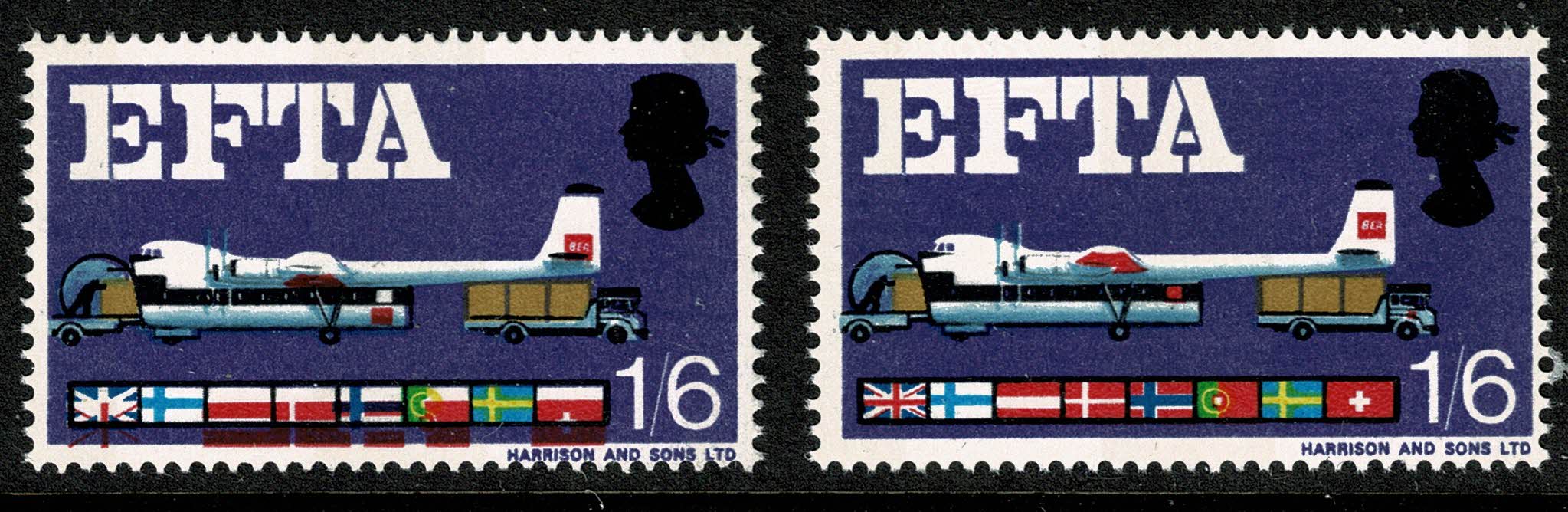 1967 EFTA 1/6 (phos). SHIFT OF RED. SG 716p var