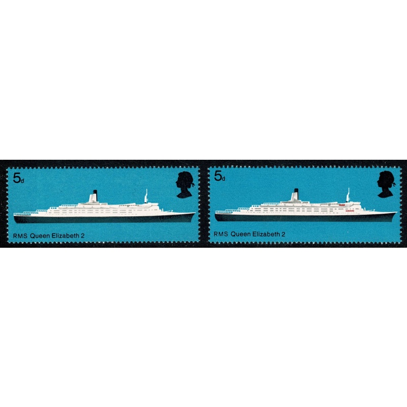 1969 Ships 5d. Error MISSING RED (CUNARD inscription and MISSING PHOSPHOR. Unmounted mint single. Illustrated and supplied with normal at right.