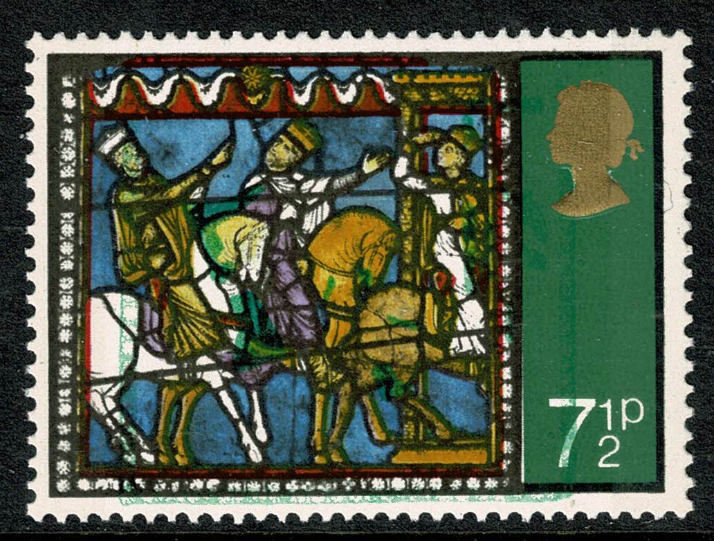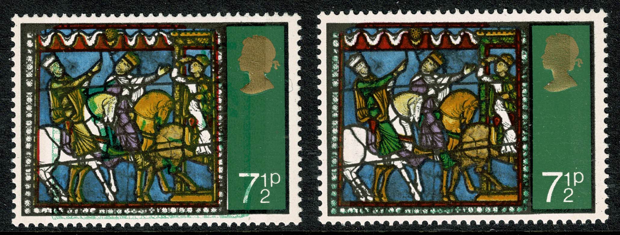 1971 Chistmas 7½p. SHIFT OF EMERALD GREEN. SG 896 var