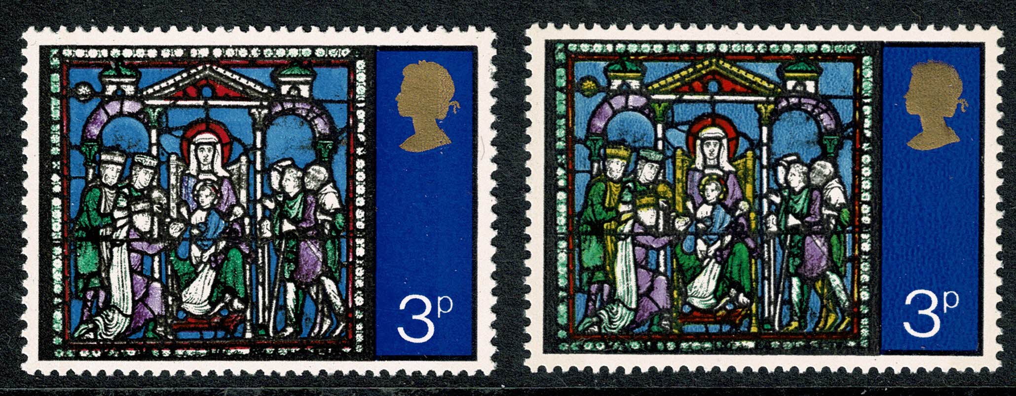 Unmounted mint single with error MISSING LEMON (various elements of stained glass from figures at left and throne of central figure, legs of figures at right). Illustrated and supplied with normal single at right.