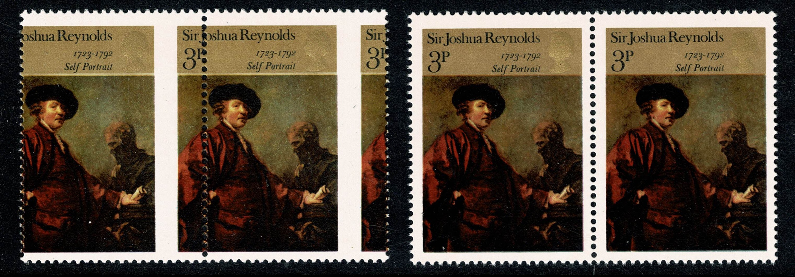 Unmounted mint horizontakl pair with SHIFT OF VERTICAL PERFORATIONS. Illustrated and supplied with normal pair at right.