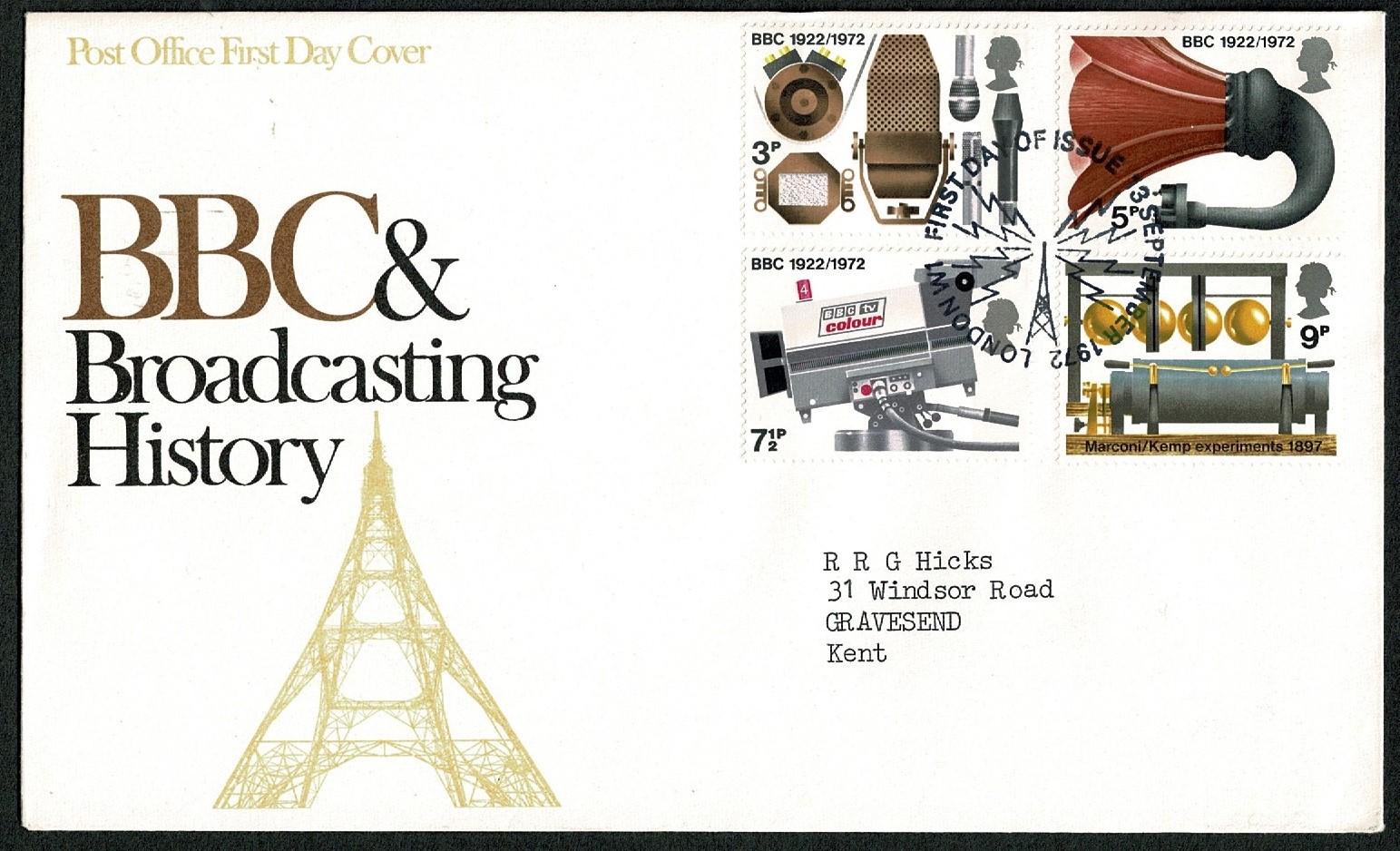 1972 BBC 9p. MISSING PHOSPHOR on FDC. SG 912y