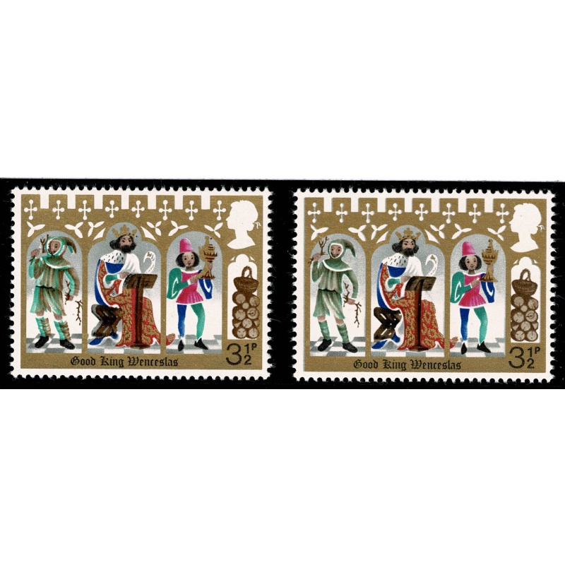 1973 Christmas 3½p (PVAD gum). SHIFT OF RED BROWN to right. SG 948 var