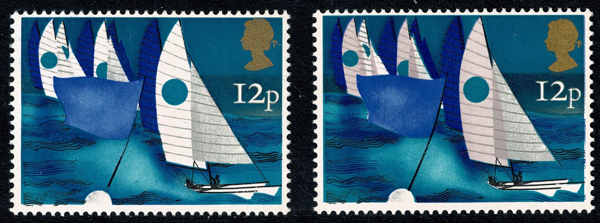 Unmounted mint single. 1975 Sailing. DRY PRINT OF PINK. A particularly fine example with really no discernible pink shading visible. As illusdtrated. Supplied with normal at right.