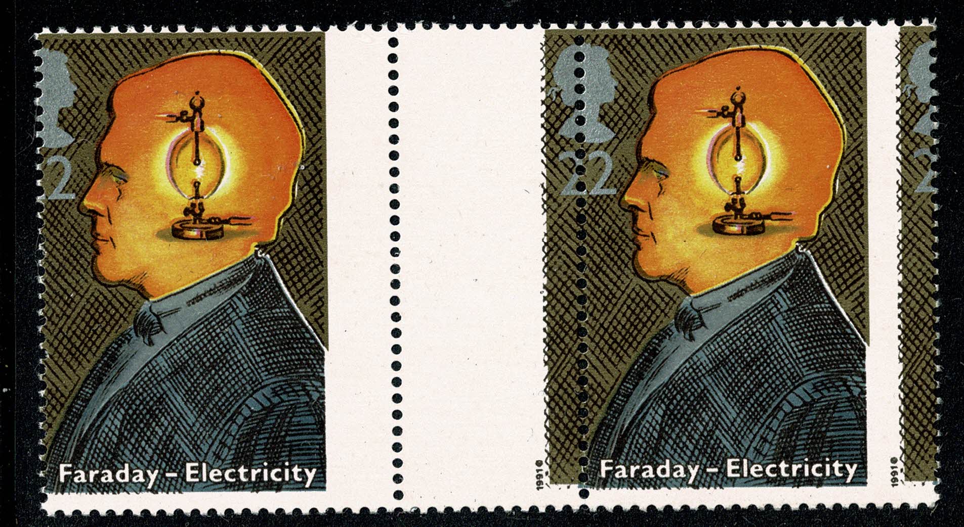 1991 Scientific Achievements 22p. PERFORATION SHIFT gutter pair. SG 1546 var.